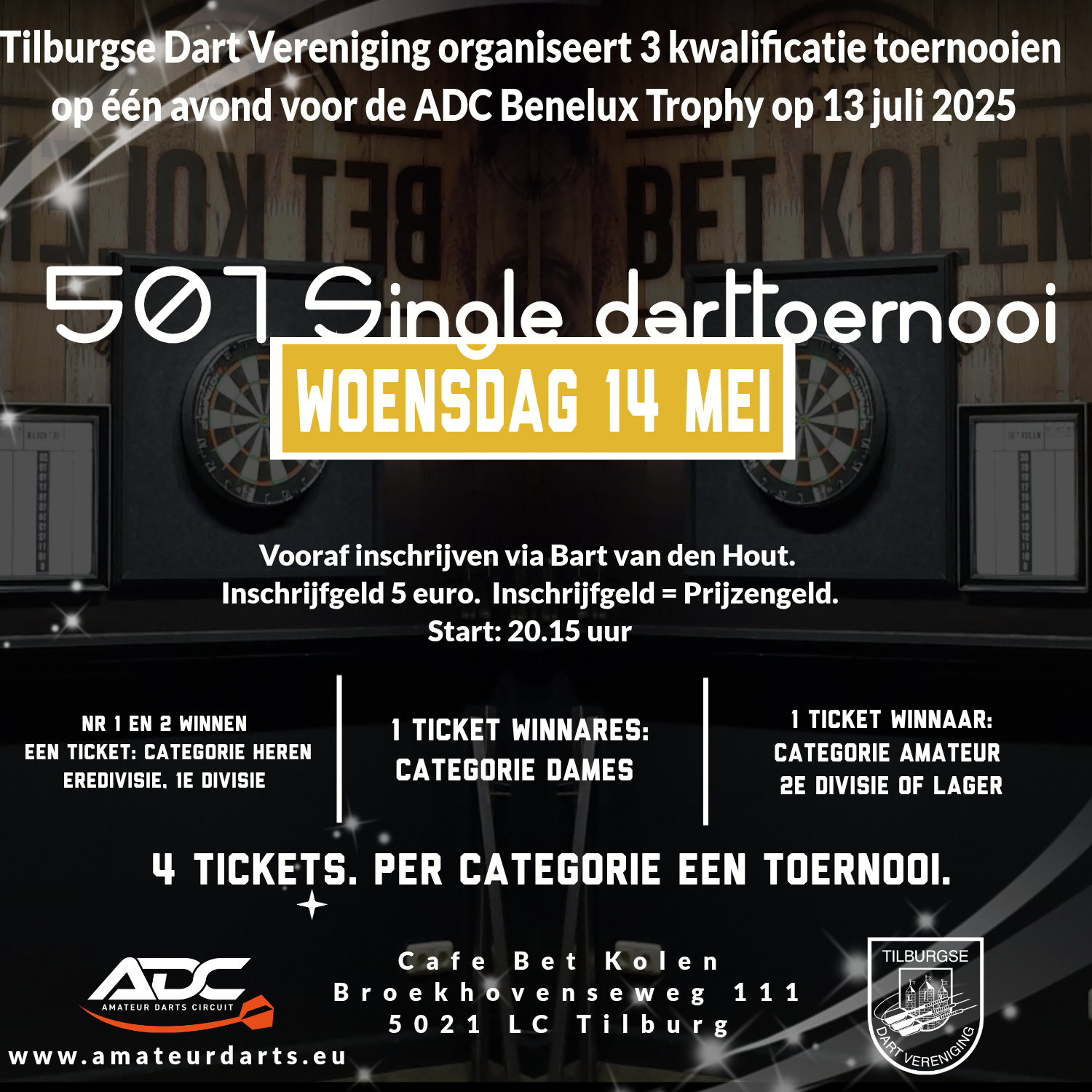 Graag van te voren inschrijven bij Bart van den Hout. Via mail bart@tdvdarts.com of facebook Bart Hout.