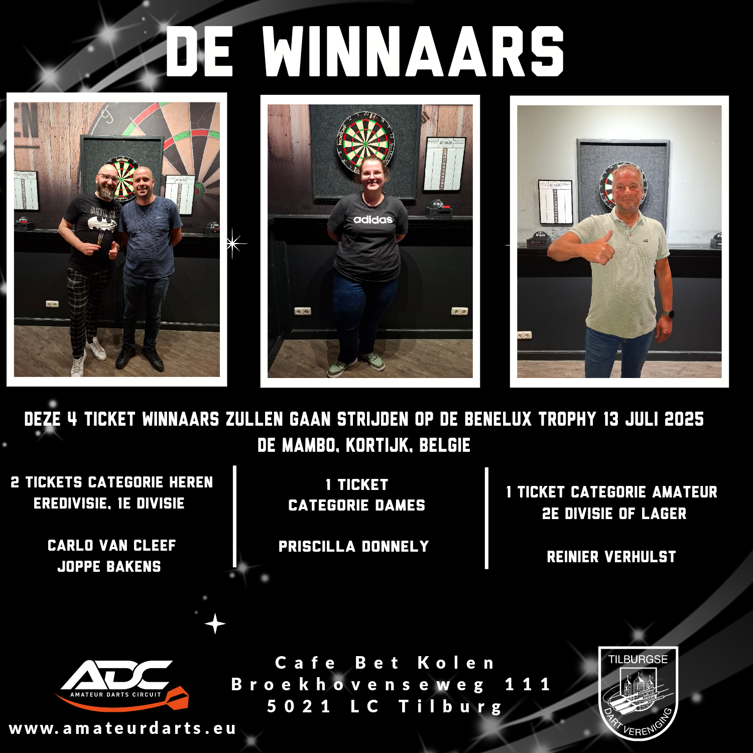 Bij de Heren Eredivisie/1e divisie gingen de tickets naar Carlo van Cleef en Joppe Bakens.
